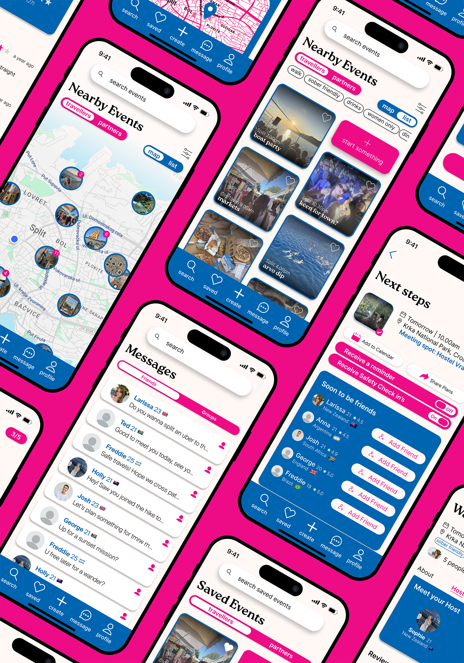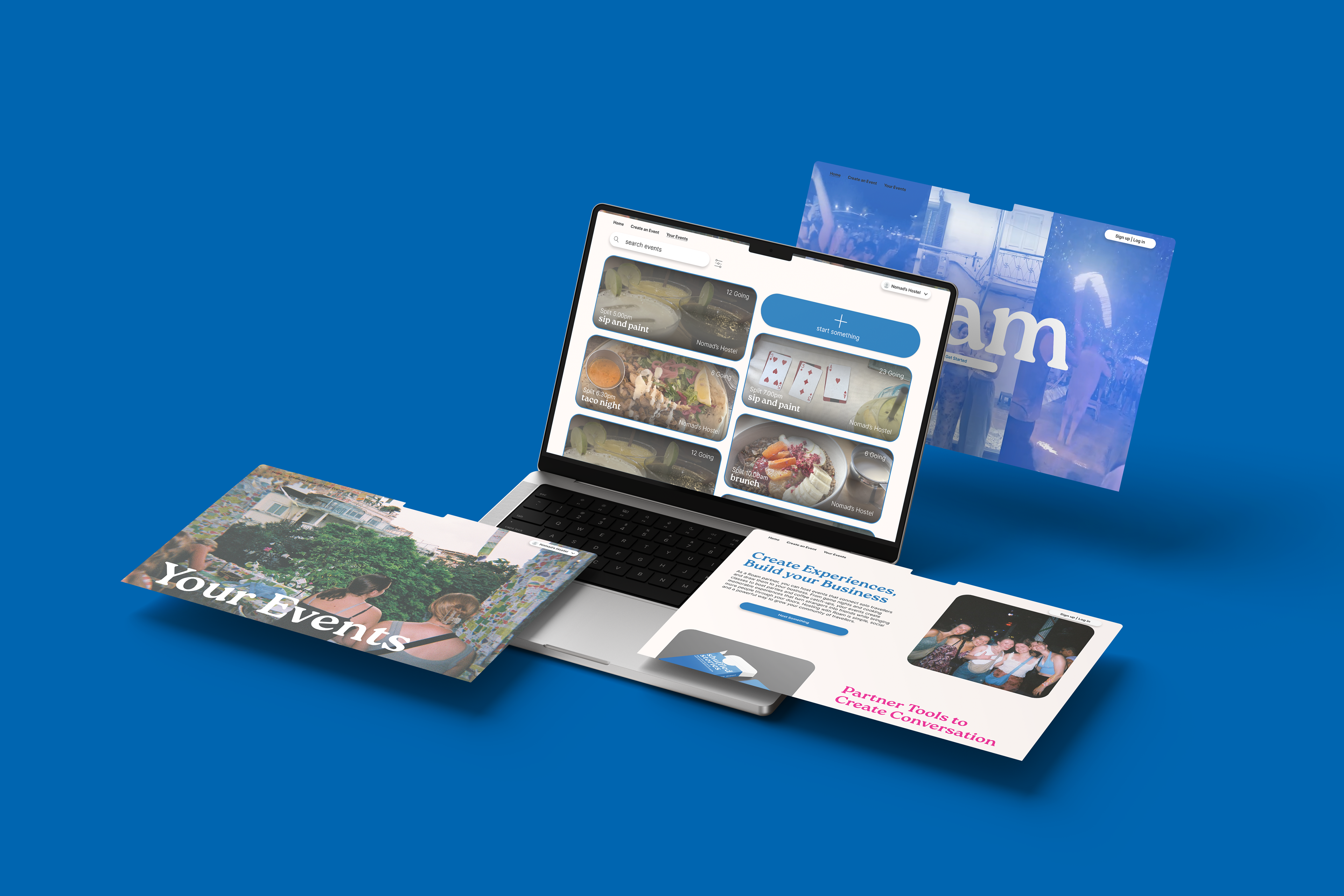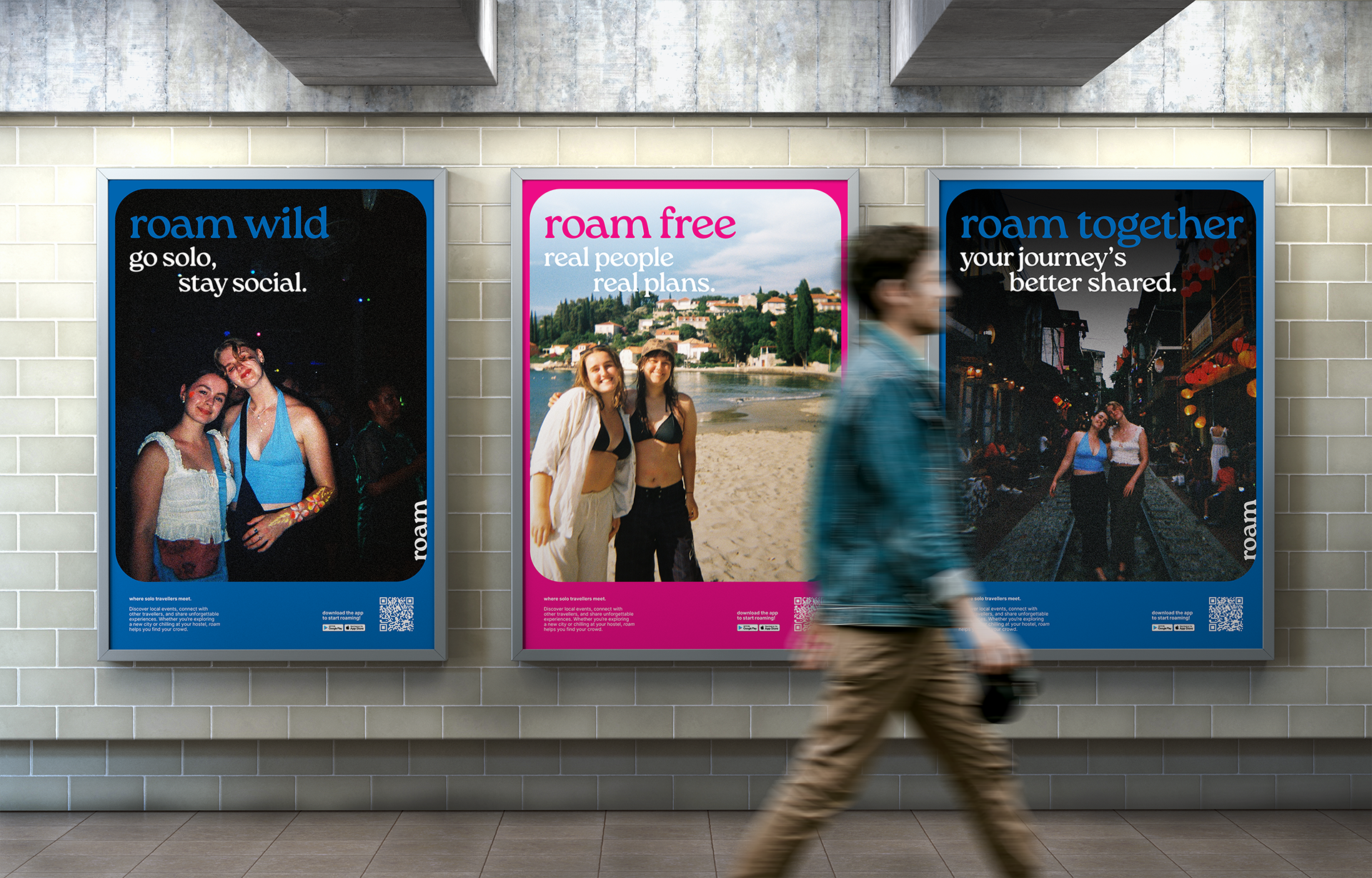 Roam is my Massey University Honours project, created to connect solo travellers through shared events and experiences while maintaining independence. The app allows users to discover and join nearby social events, meet like-minded travellers, and explore together at their own pace.
